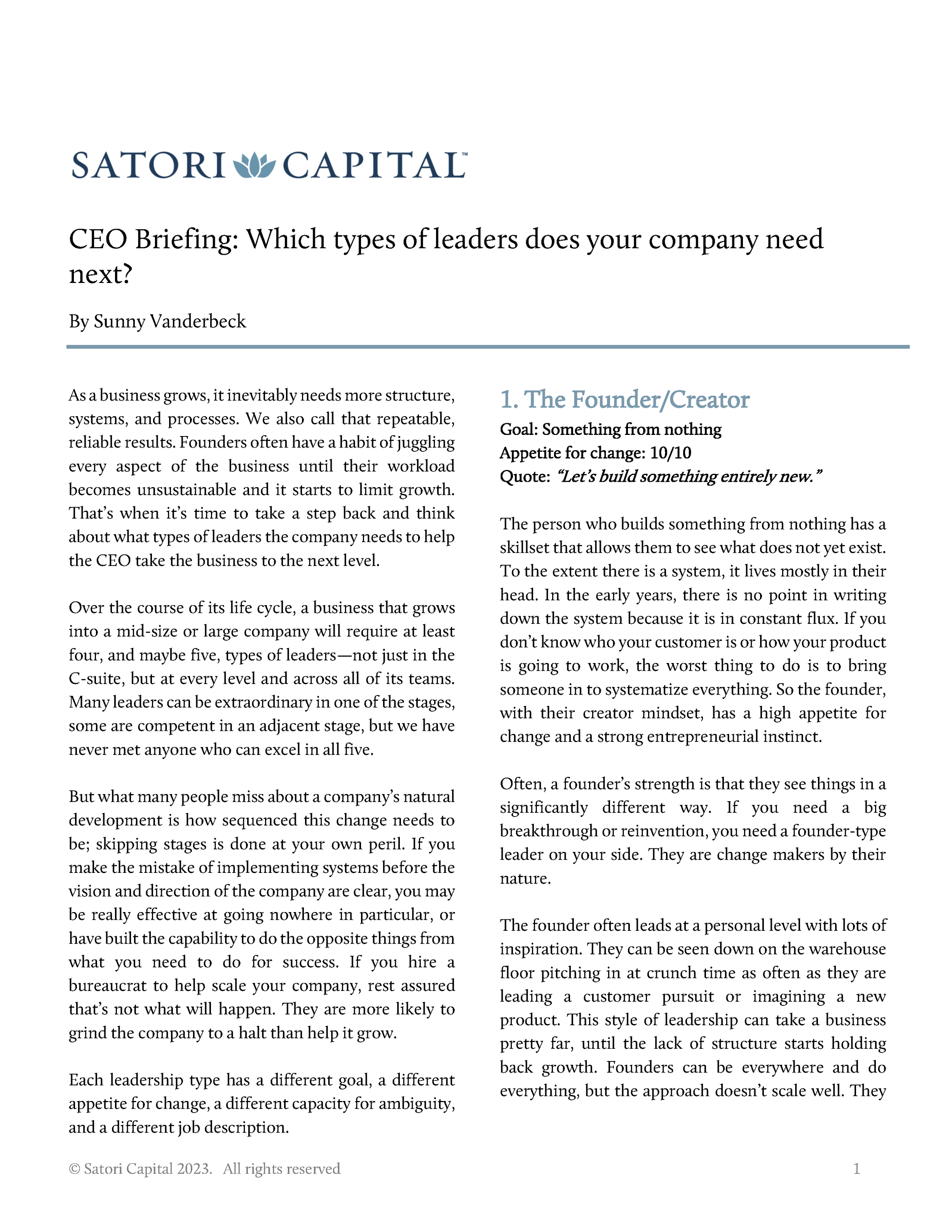 CEO Briefing: Which types of leaders does your company need next? Jun 29 Written By Sunny Vanderbeck Sunny Vanderbeck